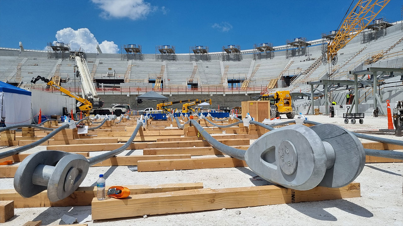 The project in Miami is not an isolated case. Ropes from Romanshorn are also being used in other international stadium projects. High-strength steel ropes from Fatzer were already used in the construction of Allegiant Stadium in Las Vegas in 2020. After the Raiders moved from Oakland to Nevada, one of the most technologically advanced stadiums in the US was built in just 36 months. Ropes were also recently delivered to Asia: the newly developed 140 mm rope is also being used in the Guangzhou Football Park currently under construction in China.